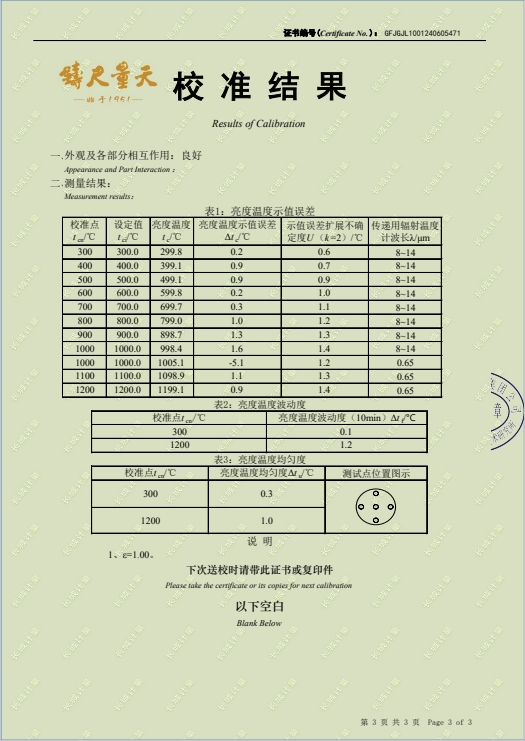 腔式黑體輻射源(300-1200℃)304所證書 2024-6-18 本文被閱讀 7512 次