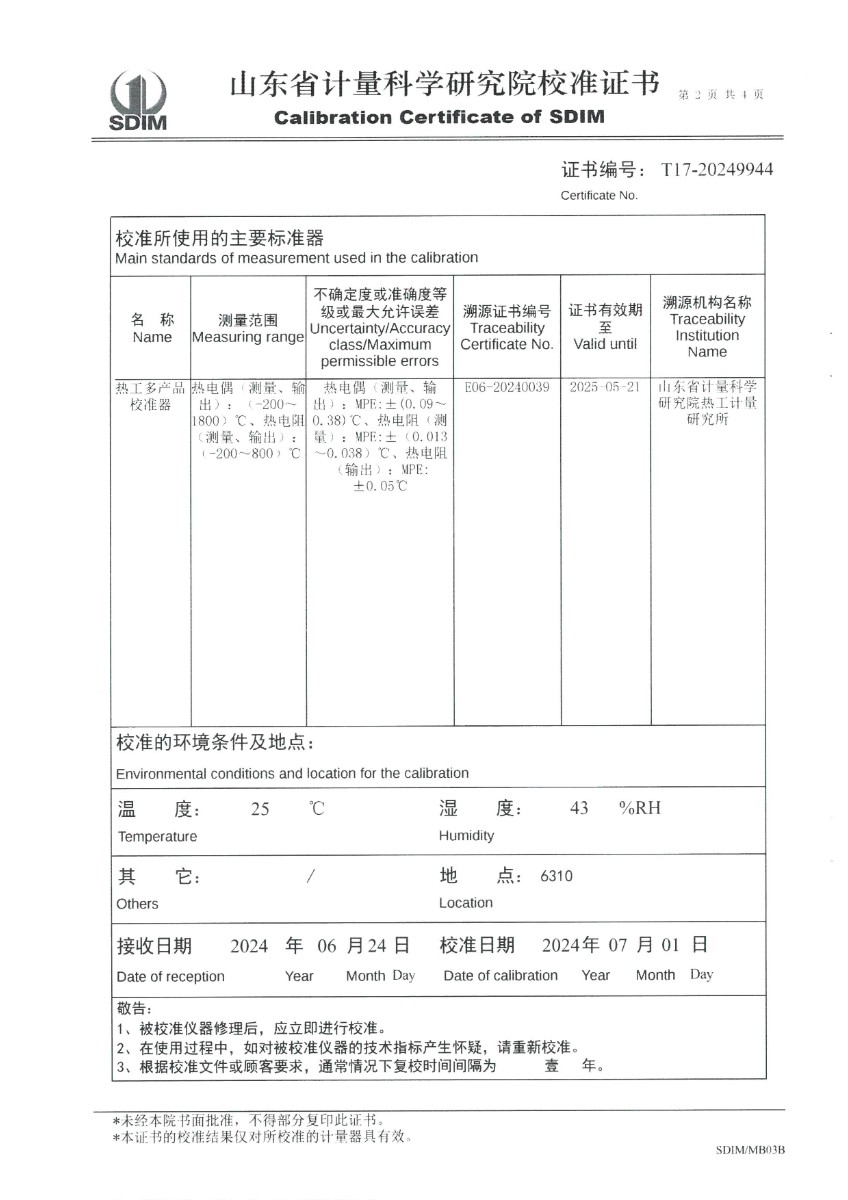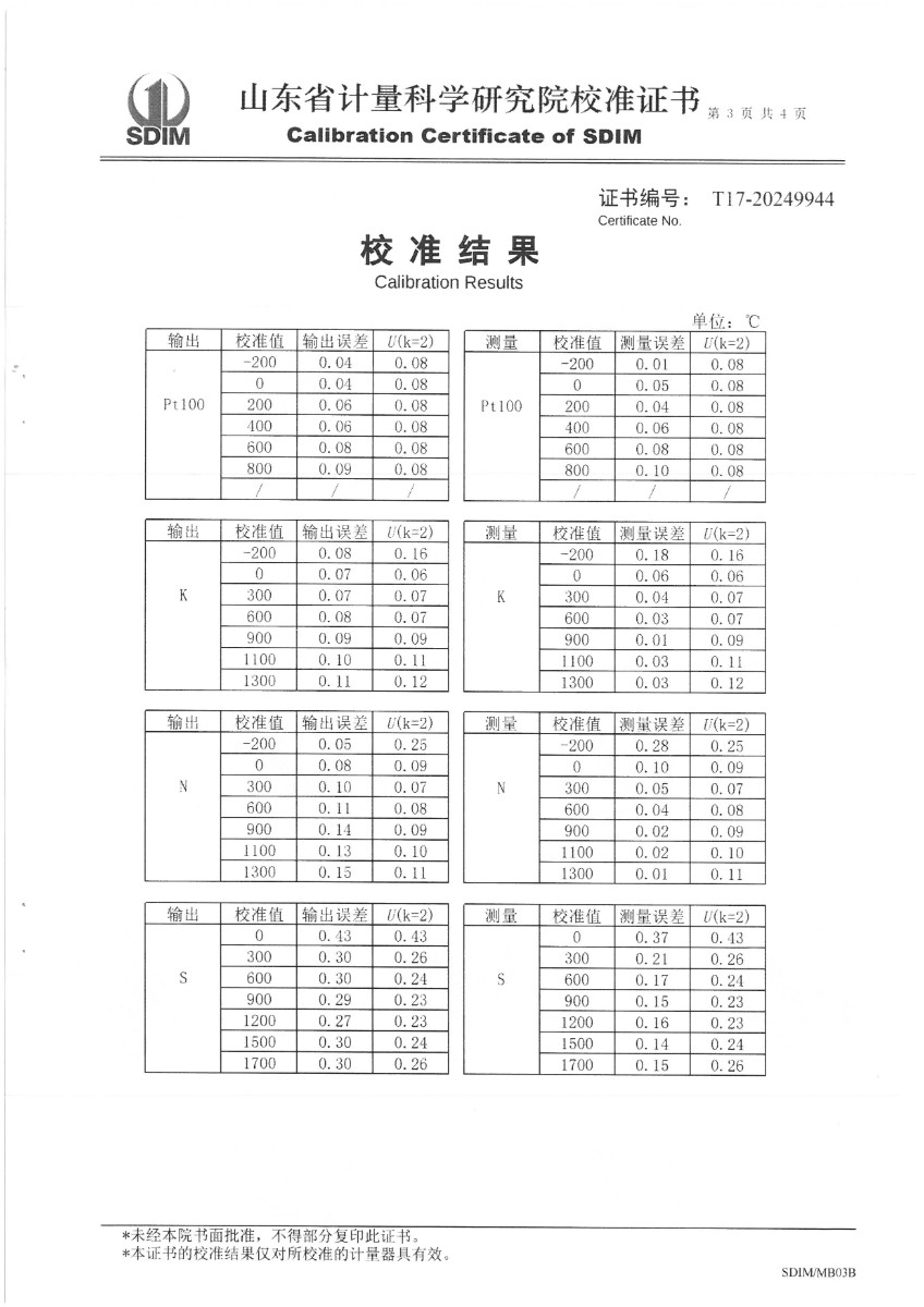 便攜式過程校驗儀(-200~1800℃)校準證書 2024-7-5 本文被閱讀 6803 次