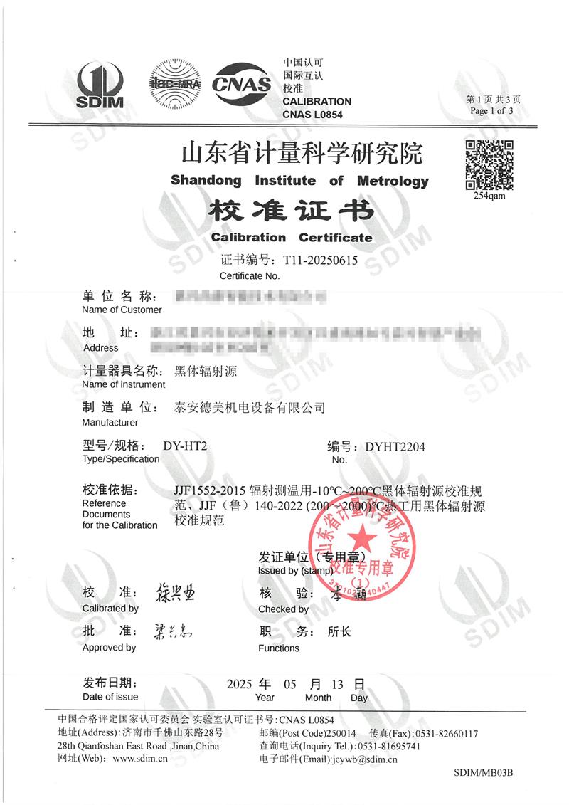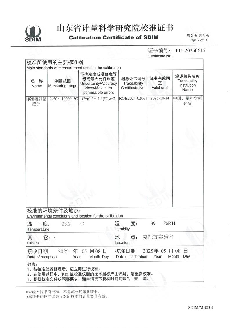 黑體爐(50~400℃)校準(zhǔn)證書 2025-5-16 本文被閱讀 4269 次