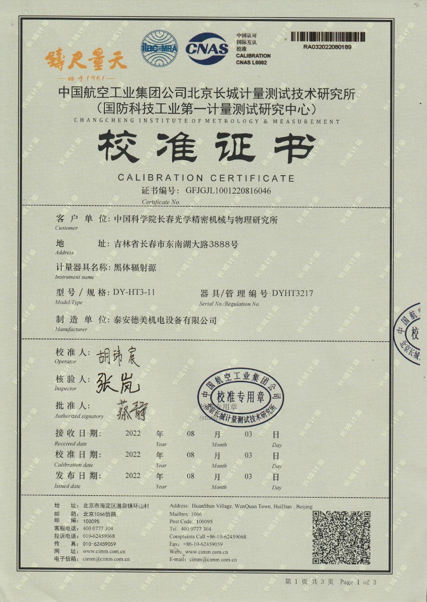 中國科學院長春光學精密機械與物理研究所-黑體爐DY-HT3-11 2022-9-5 本文被閱讀 15111 次