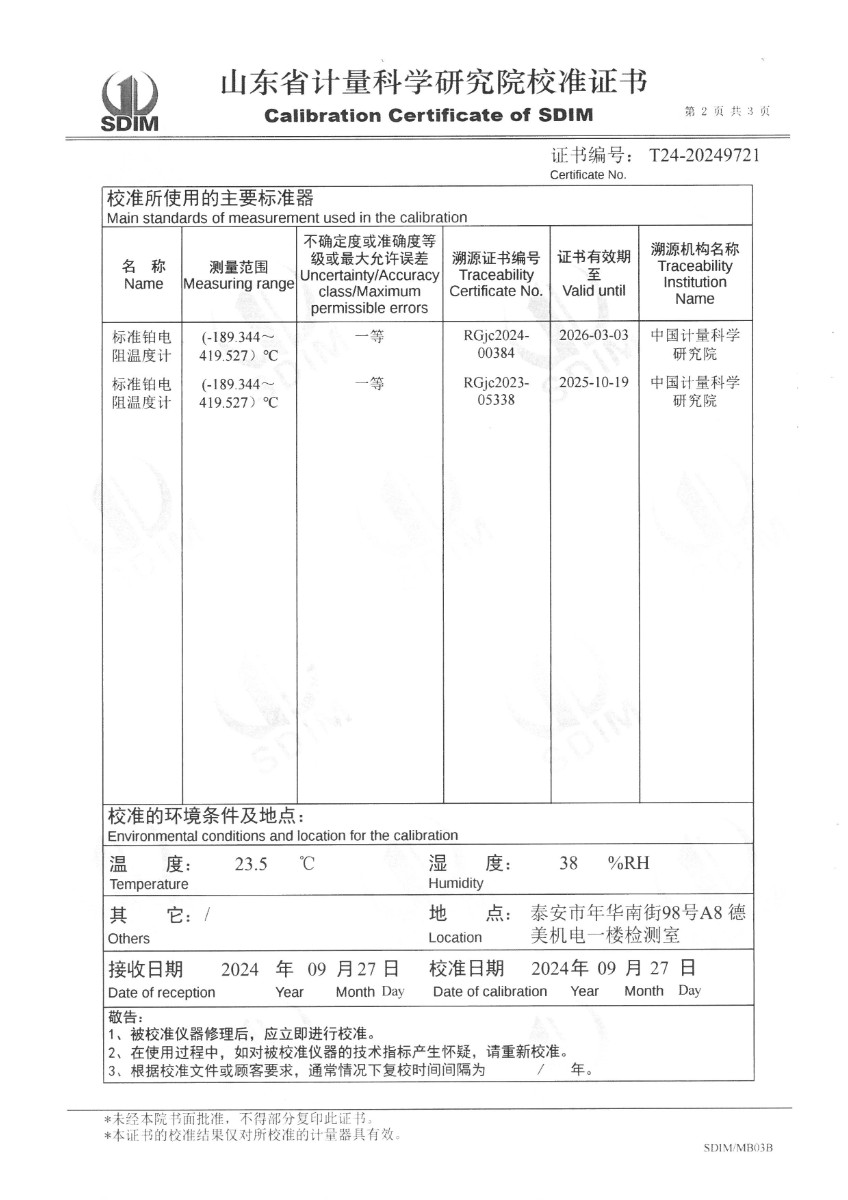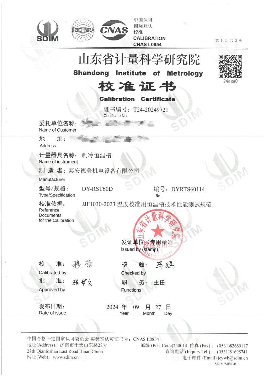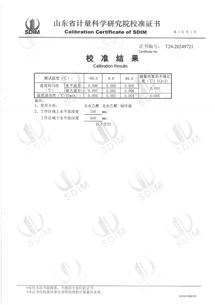 制冷恒溫槽(-60~95℃)校準證書 2024-10-8 本文被閱讀 7454 次