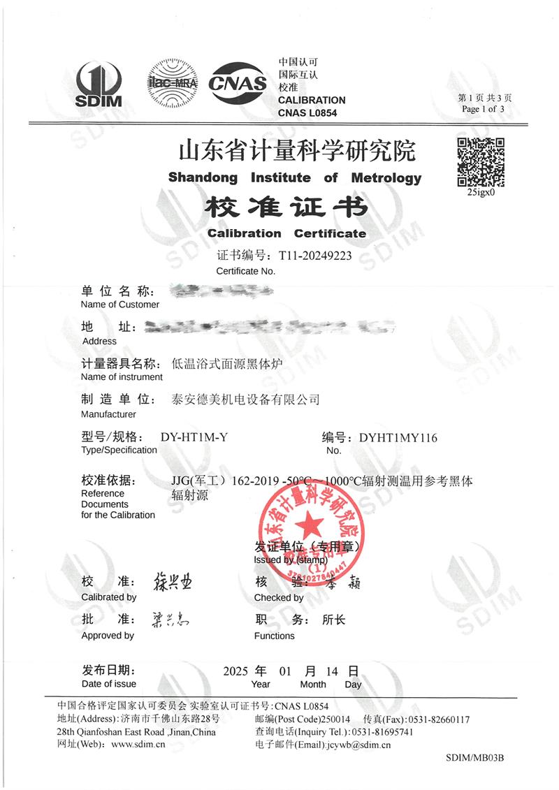 低溫浴式面源黑體爐(-50-80℃)校準證書 2025-1-20 本文被閱讀 6227 次