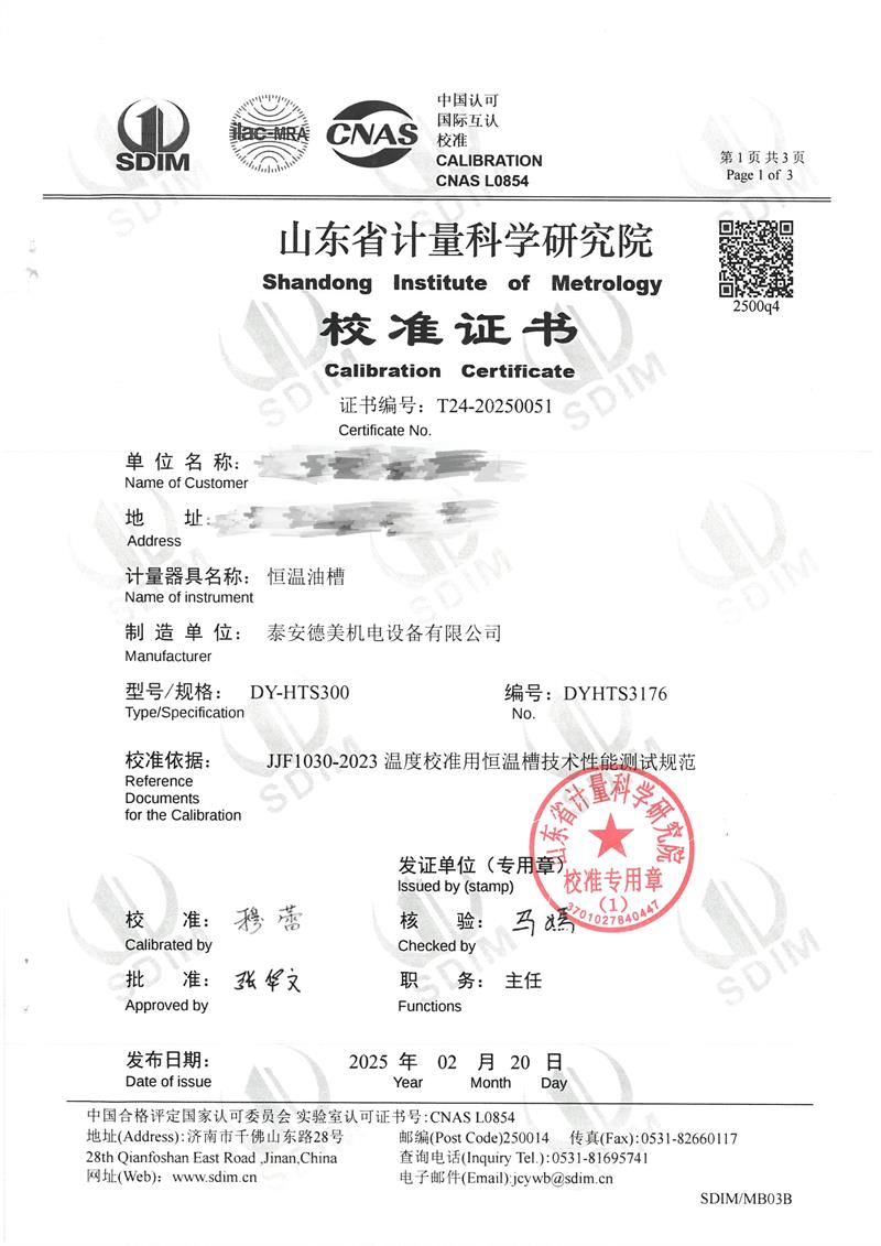 恒溫油槽(70~300℃)校準證書 2025-2-26 本文被閱讀 5984 次