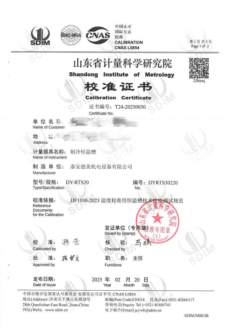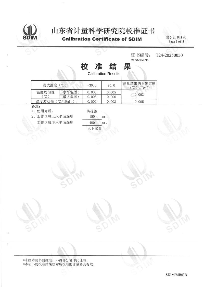 制冷恒溫槽(-30~95℃)校準(zhǔn)證書 2025-2-26 本文被閱讀 6511 次