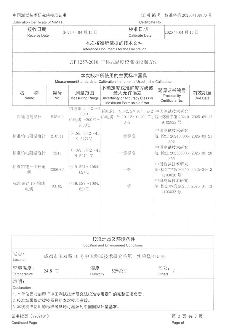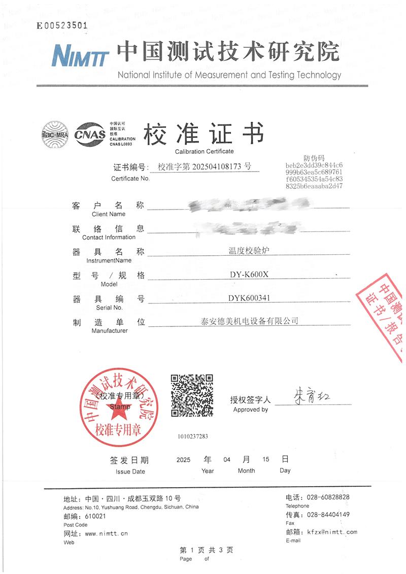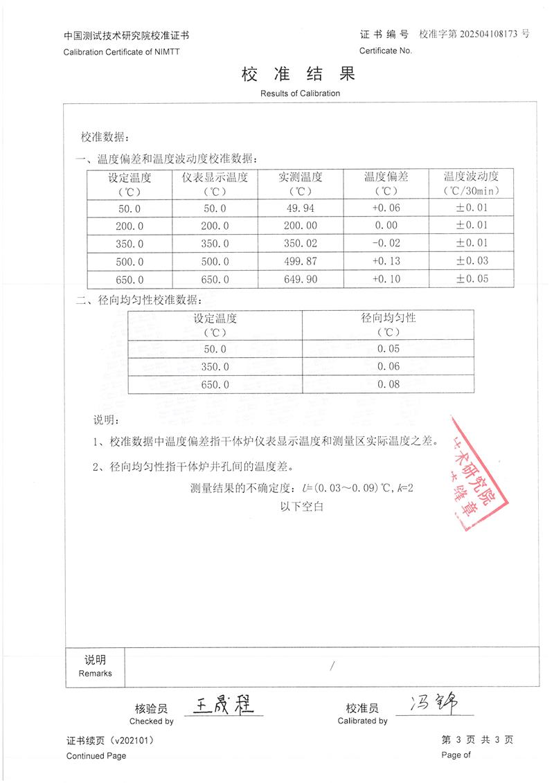 | 上一條:手提式恒溫油槽(70-300℃)校準(zhǔn)證書 | 下一條:廉金屬熱電偶檢定爐-校準(zhǔn)證書 |