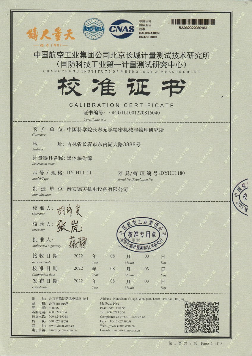 | 上一條:中國科學(xué)院長春光學(xué)精密機(jī)械與物理研究所-黑體爐DY-HT1-2 | 下一條:廉金屬熱電偶檢定爐-校準(zhǔn)證書 |