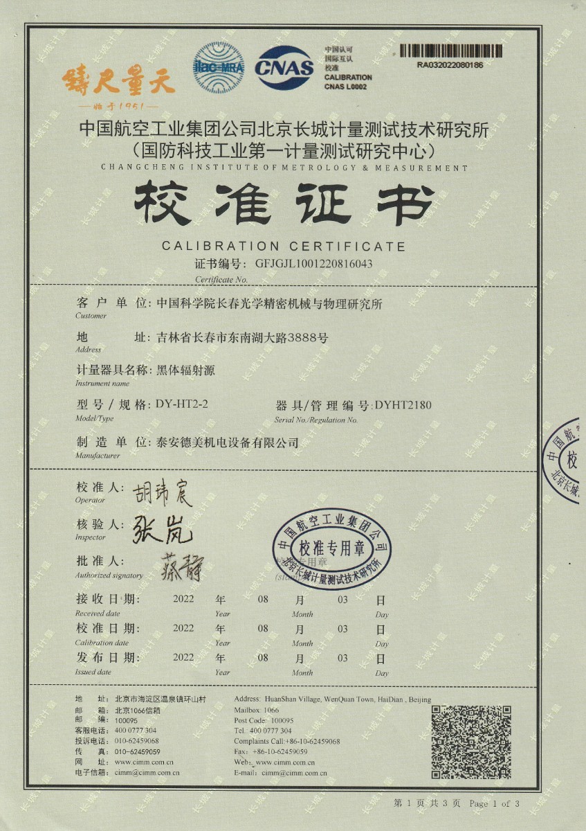 | 上一條:中國(guó)科學(xué)院長(zhǎng)春光學(xué)精密機(jī)械與物理研究所-黑體爐DY-HT2-1 | 下一條:廉金屬熱電偶檢定爐-校準(zhǔn)證書 |