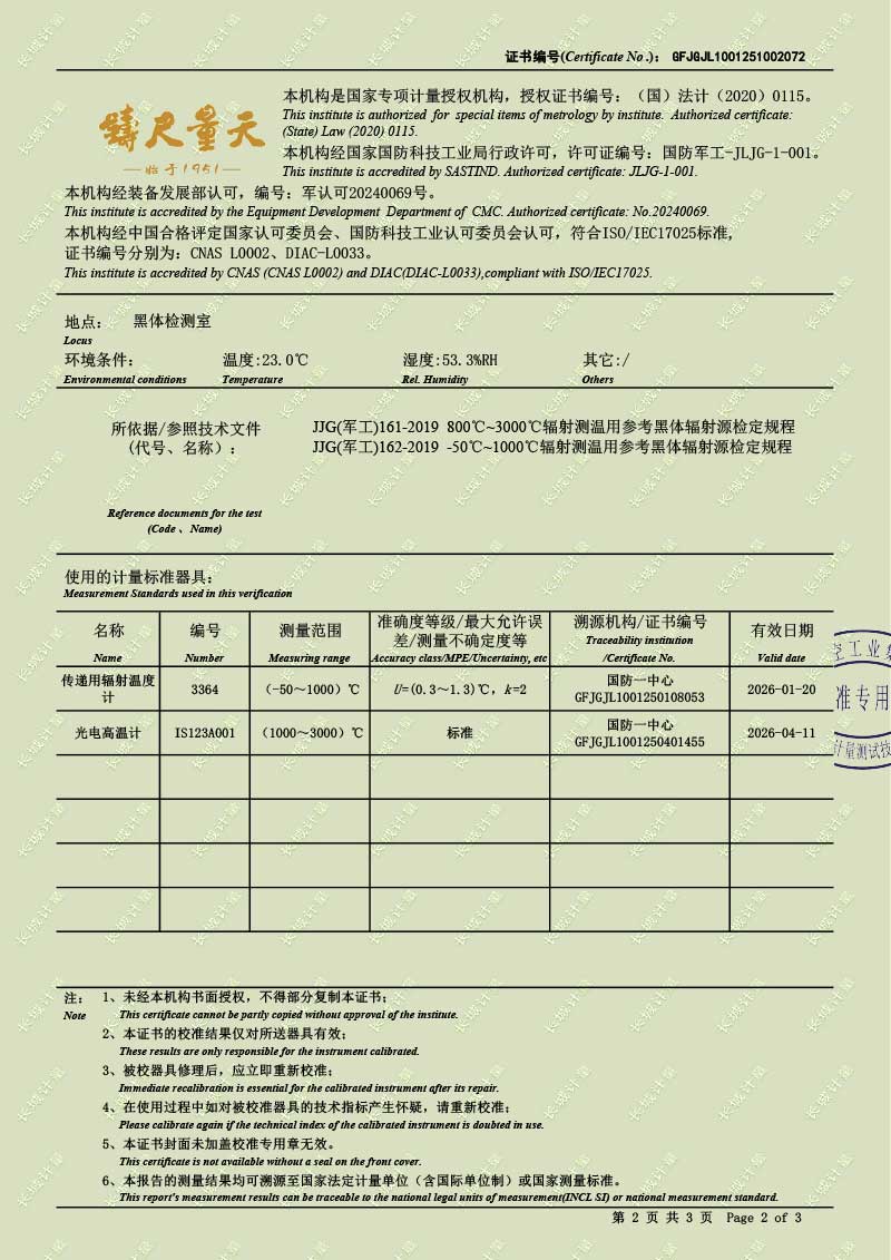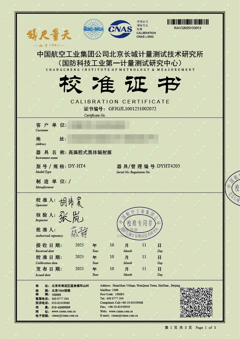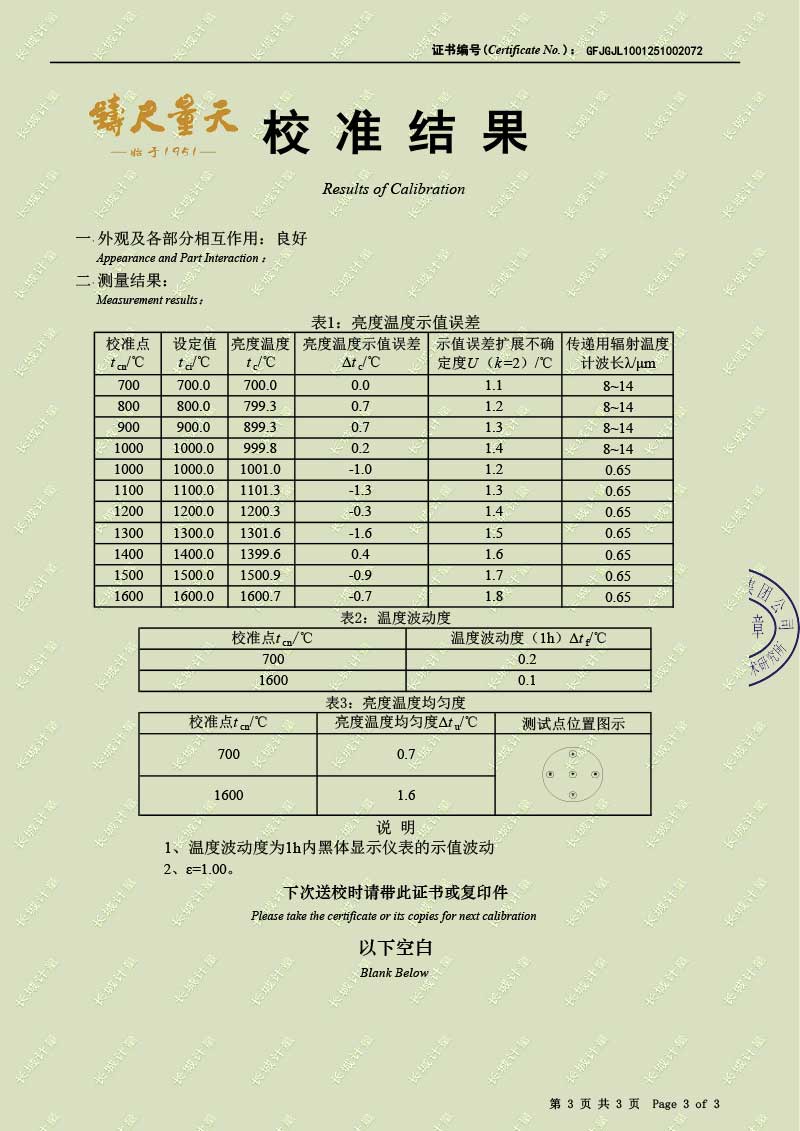 | 上一條:低溫液槽式黑體爐(-40-100℃)校準(zhǔn)證書(shū) | 下一條:廉金屬熱電偶檢定爐-校準(zhǔn)證書(shū) |