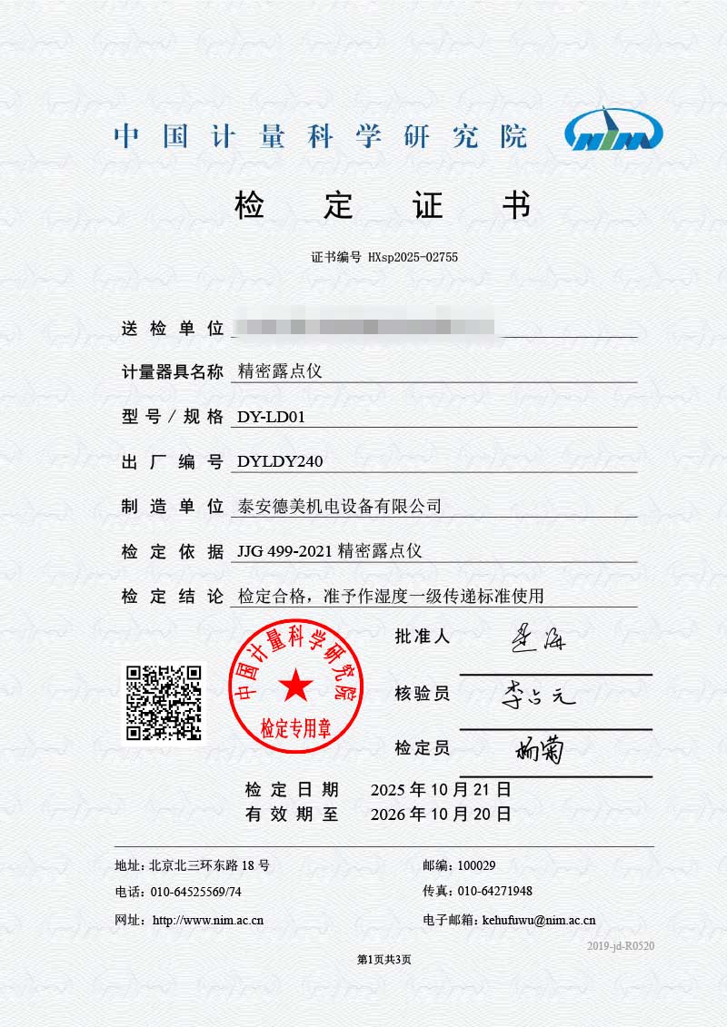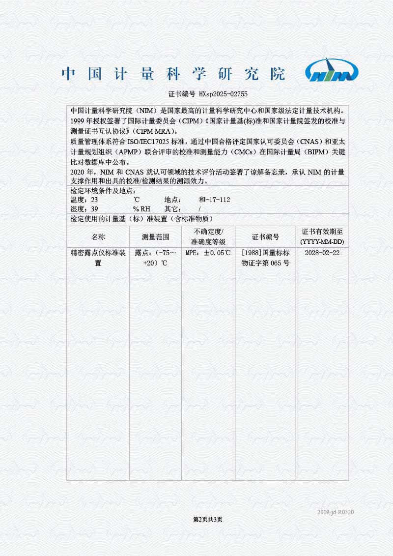 露點儀檢定證書 2025-10-30 本文被閱讀 2082 次