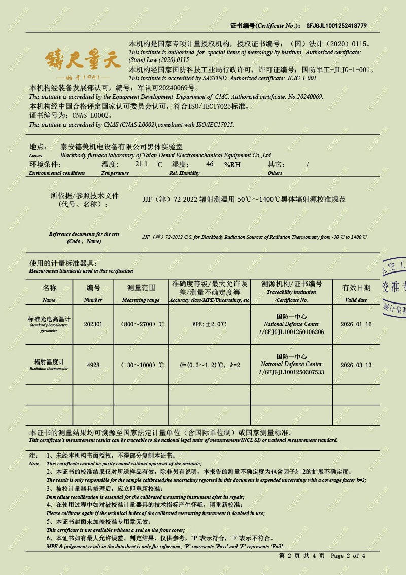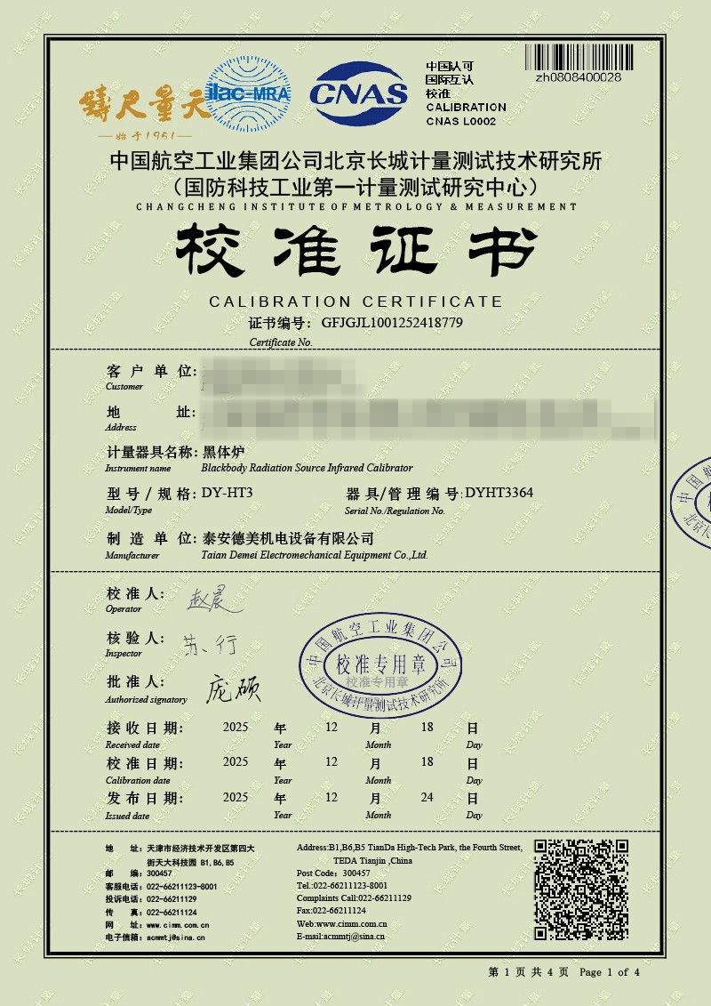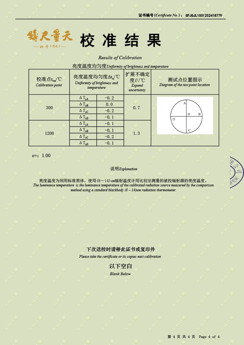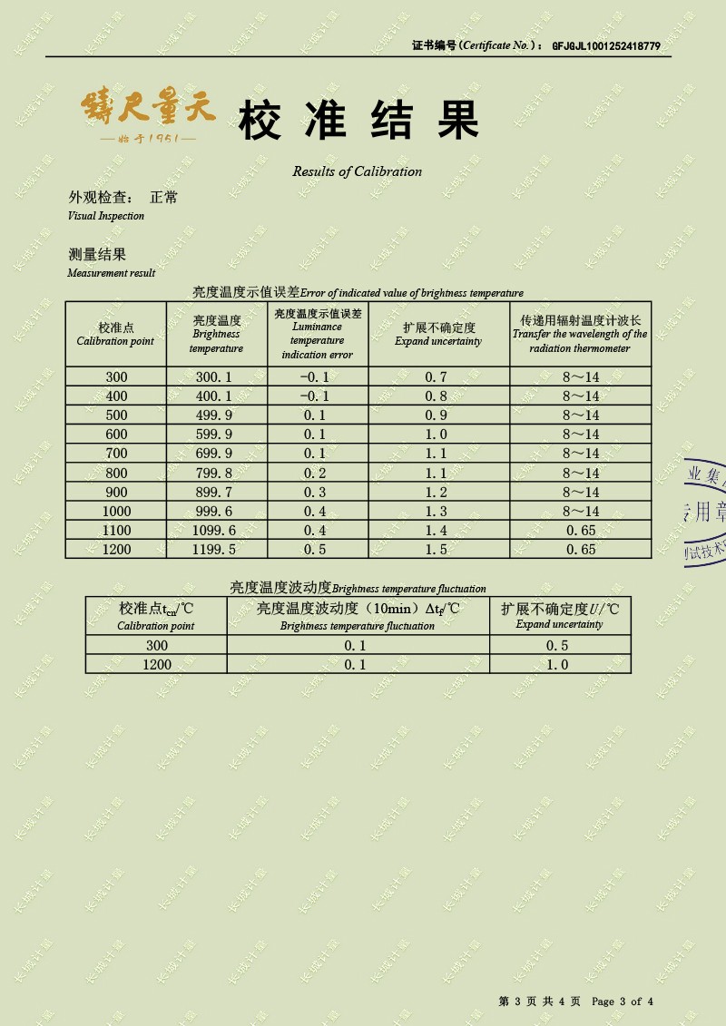 | 上一條:高精度制冷恒溫槽(-80~100℃)校準(zhǔn)證書(shū) | 下一條:廉金屬熱電偶檢定爐-校準(zhǔn)證書(shū) |