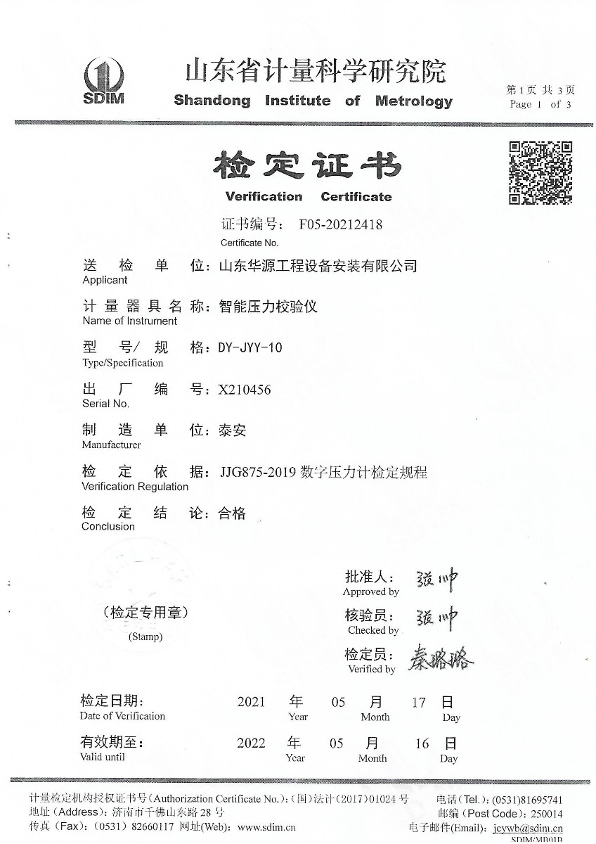 | 上一條:山東華源工程設(shè)備安裝有限公司-智能壓力校驗儀X210455 | 下一條:廉金屬熱電偶檢定爐-校準(zhǔn)證書 |