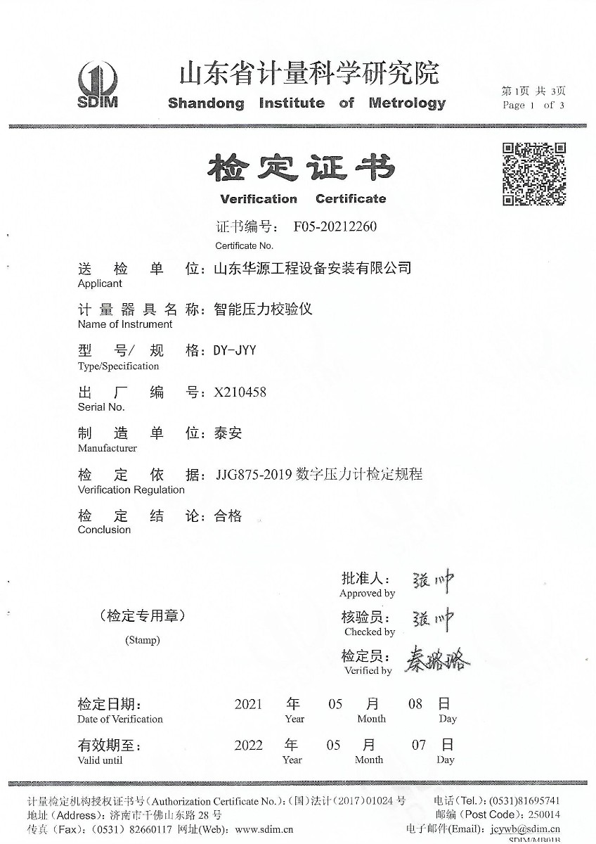 山東華源工程設備安裝有限公司-智能壓力校驗儀X210458 2021-5-27 本文被閱讀 14797 次