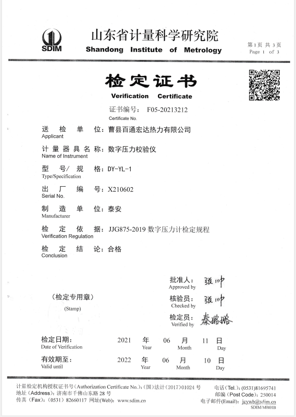 曹縣百通宏達熱力有限公司-數(shù)字壓力校驗儀 2021-6-23 本文被閱讀 16419 次