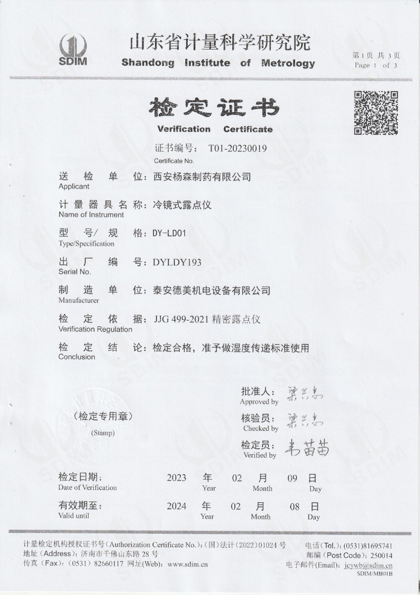 | 上一條:廈門新能安科技有限公司 冷鏡式露點儀(溫度) 校準(zhǔn)證書 | 下一條:廉金屬熱電偶檢定爐-校準(zhǔn)證書 |